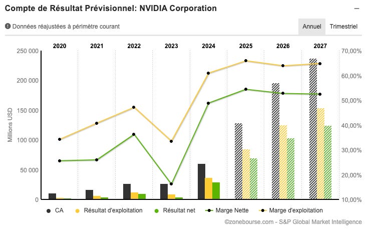 Nvidia se nĂ©gocie 27,4x les bĂ©nĂ©fices 2027âŠ