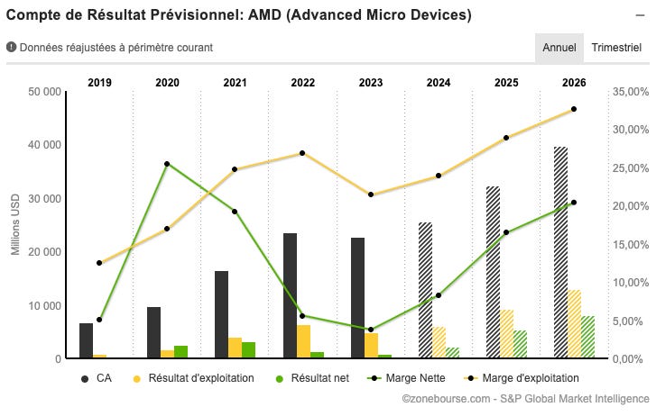 AMD, câest 27,5x les bĂ©nĂ©fices 2027.