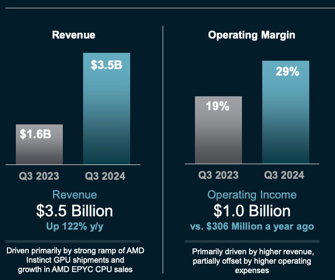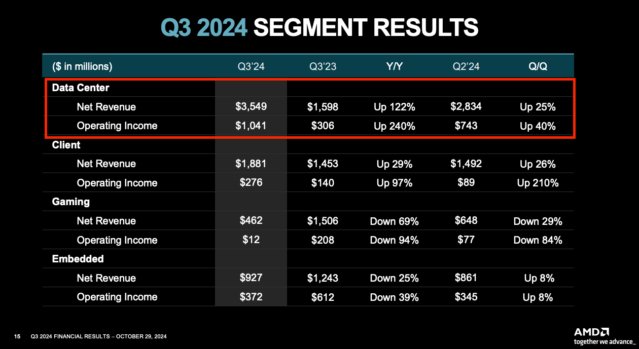 AMD vend des produits pour les data centers qui ont des besoins monstres du fait du dĂ©veloppement de lâIA, mais aussi pour tous les robots intelligents via sa branche Embedded. Ce sont les deux branches Ă fort potentiel.