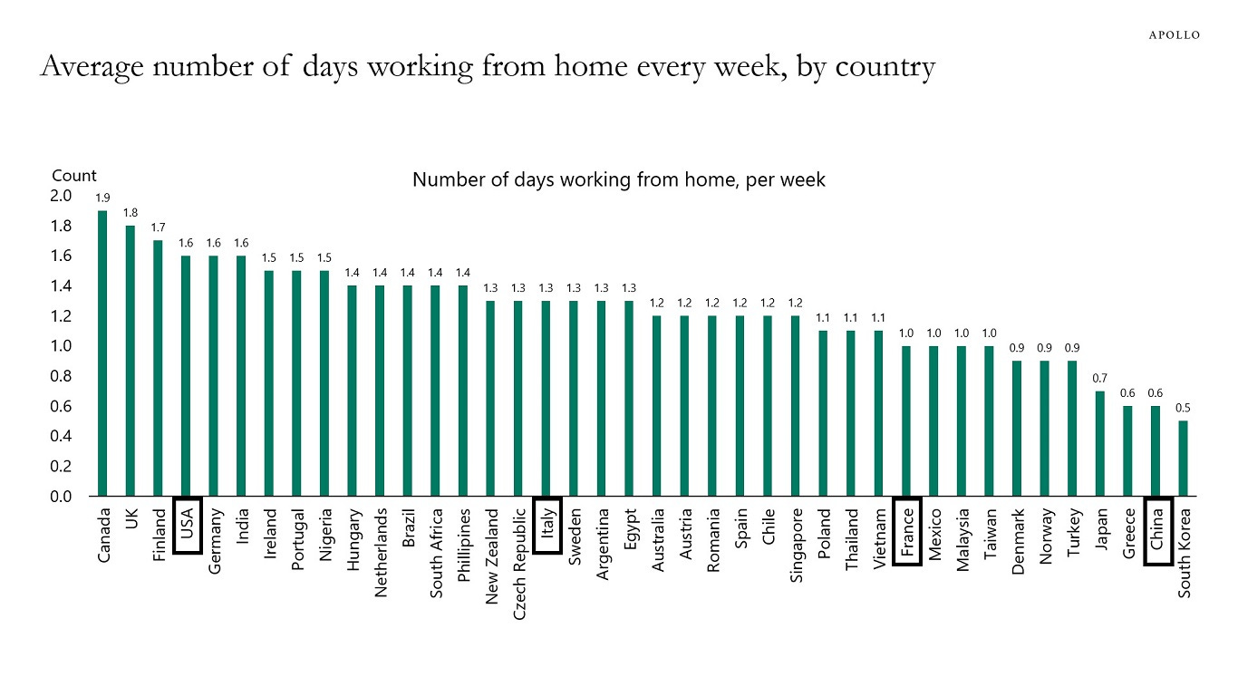 đ Les travailleurs amĂ©ricains travaillent en moyenne 1,6 jour par semaine depuis leur domicile, soit plus que les travailleurs en Italie, en France et en Chine (voir graphique ci-dessous).