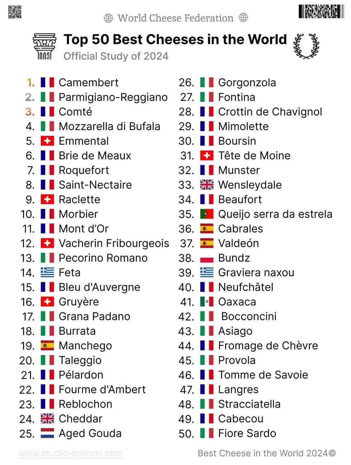 đ«đ· Nous sommes champions des dĂ©penses publiques en % du PIB, des dĂ©ficits en Europe, mais au moins, nous avons de bons fromages. đ TrĂšs sĂ©rieusement, câest une force exportatrice pour la France. Câest un domaine oĂč nous excellons et que les Chinois ne peuvent pas copier (car câest plus quâun simple produit que lâon vend).