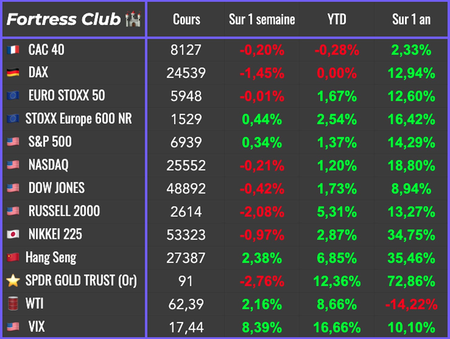 Tous les investissements (en bourse ou ailleurs) comportent des risques de perte en capital. Plus un investissement peut rapporter, plus il est risquĂ©. Les informations mises aÌ disposition par le Fortress Club sâadressent aÌ des investisseurs disposant des connaissances et expeÌriences neÌcessaires pour comprendre et appreÌcier les informations deÌveloppeÌes. Ces informations sont donneÌes aÌ titre informatif et ne repreÌsentent en aucun cas une obligation dâinvestissement. Elles ne constituent par ailleurs pas un conseil en investissement.