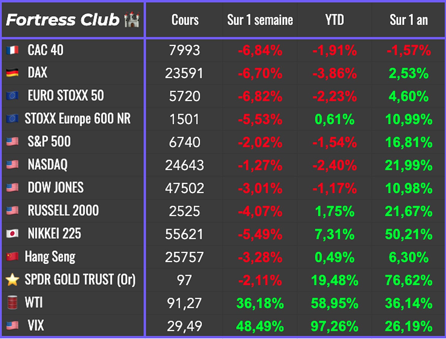 Tous les investissements (en bourse ou ailleurs) comportent des risques de perte en capital. Plus un investissement peut rapporter, plus il est risquĂ©. Les informations mises aÌ disposition par le Fortress Club sâadressent aÌ des investisseurs disposant des connaissances et expeÌriences neÌcessaires pour comprendre et appreÌcier les informations deÌveloppeÌes. Ces informations sont donneÌes aÌ titre informatif et ne repreÌsentent en aucun cas une obligation dâinvestissement. Elles ne constituent par ailleurs pas un conseil en investissement.