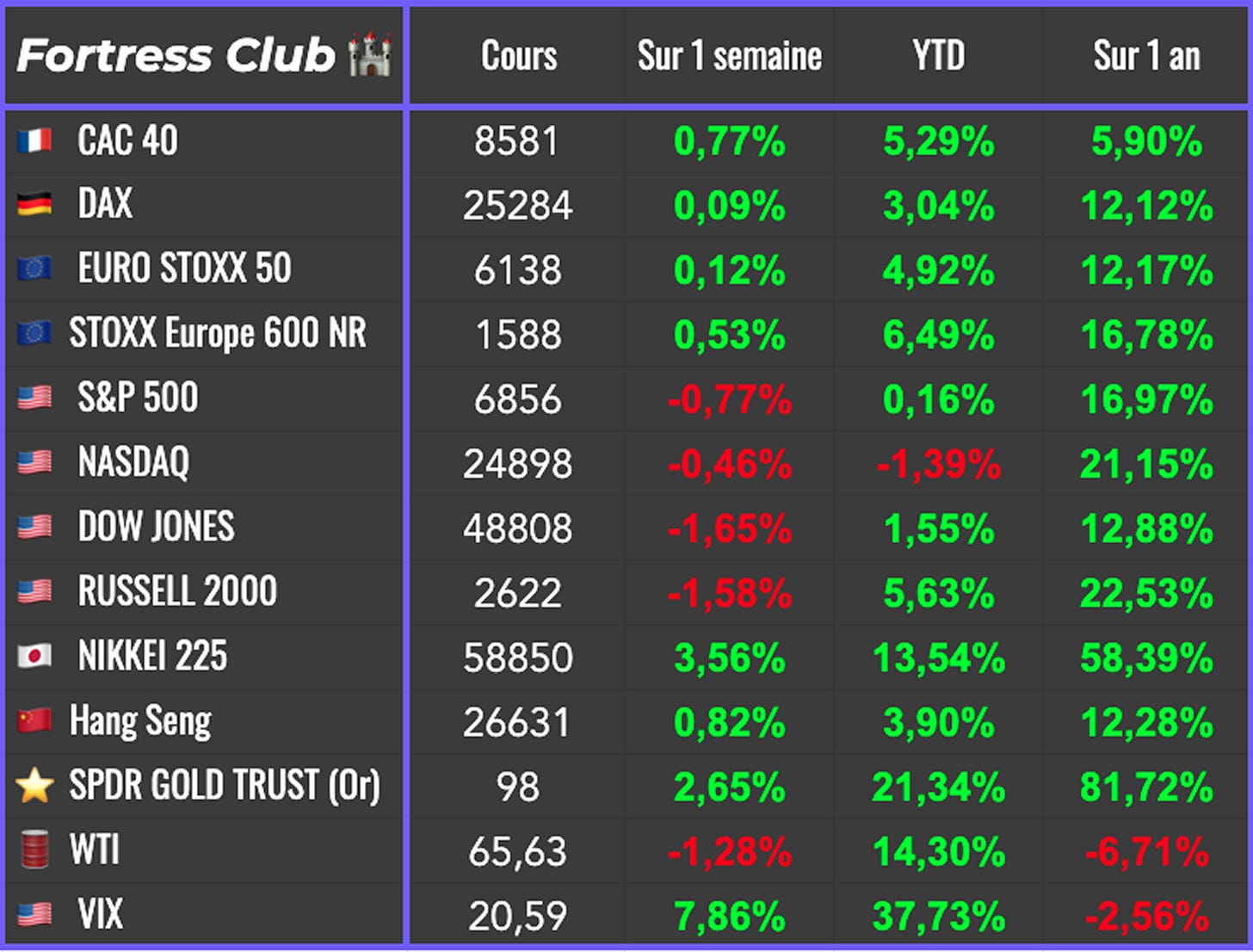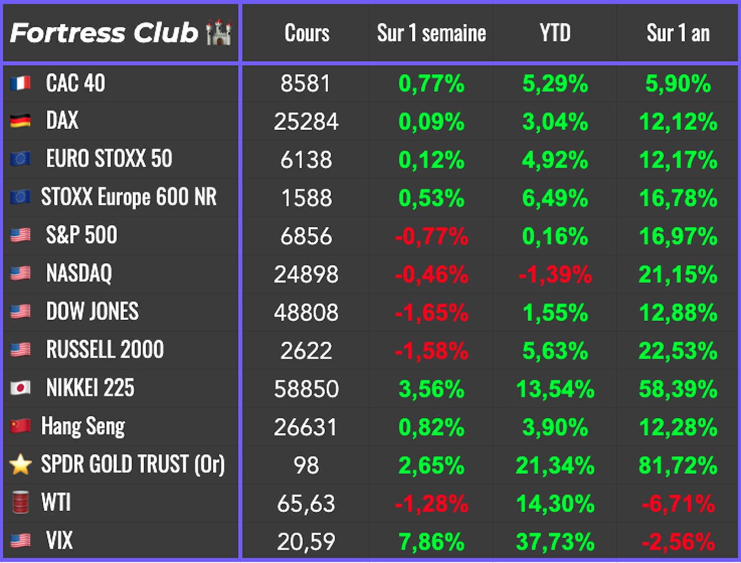 Tous les investissements (en bourse ou ailleurs) comportent des risques de perte en capital. Plus un investissement peut rapporter, plus il est risquĂ©. Les informations mises aÌ disposition par le Fortress Club sâadressent aÌ des investisseurs disposant des connaissances et expeÌriences neÌcessaires pour comprendre et appreÌcier les informations deÌveloppeÌes. Ces informations sont donneÌes aÌ titre informatif et ne repreÌsentent en aucun cas une obligation dâinvestissement. Elles ne constituent par ailleurs pas un conseil en investissement.
