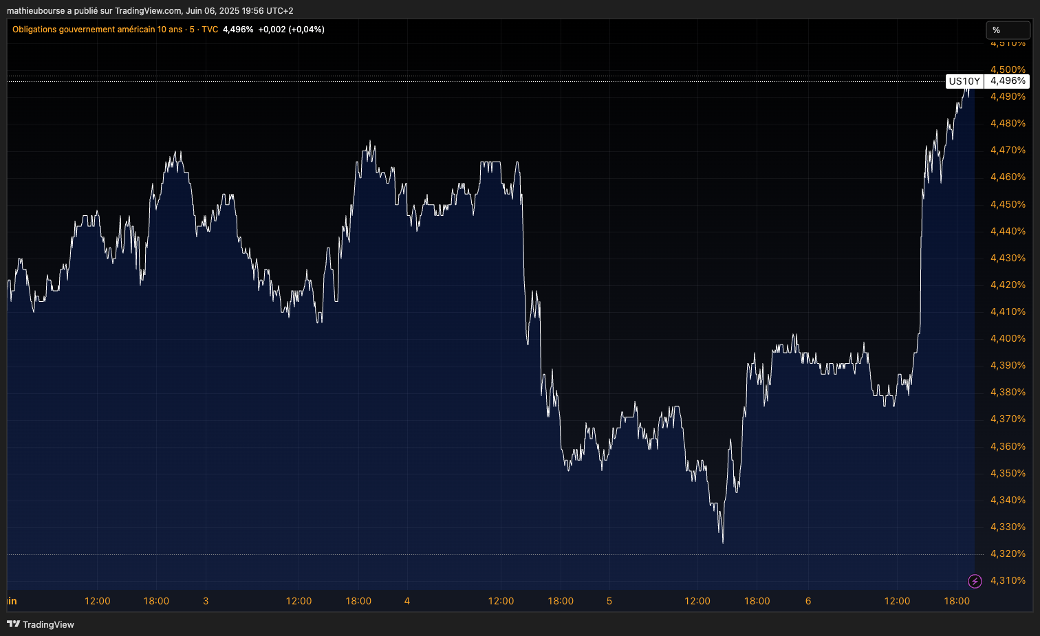 Et⊠par une hausse du rendement de la dette amĂ©ricaine⊠car lâĂ©conomie amĂ©ricaine se porte toujours trop bien.