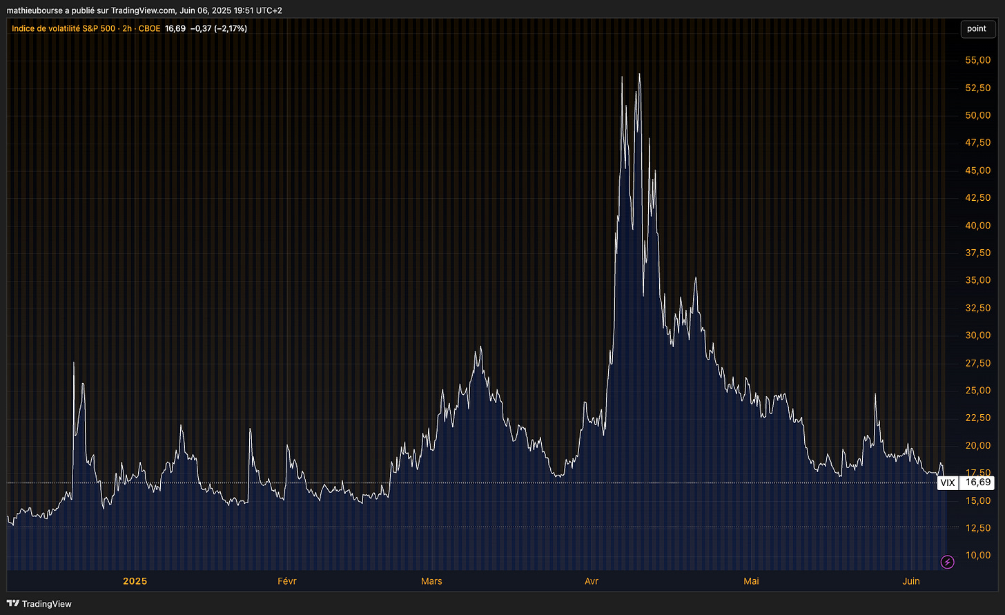 Cela sâillustre par une baisse du VIX qui est revenu sur ses plus bas de 3 mois.