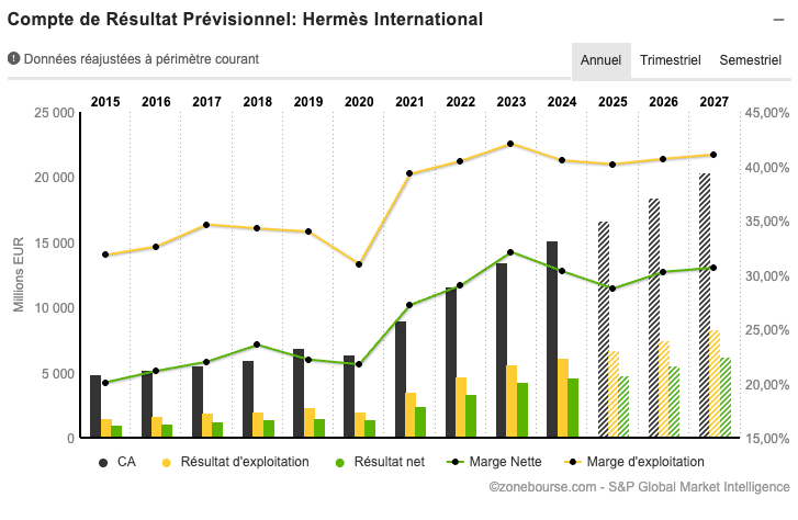 HermÚs fait office de valeur sûre dans son secteur, alors que son unique marque se porte à merveille, et que son positionnement le protÚge pour le moment d'une conjoncture économique incertaine, et que le groupe a un fort pricing power.