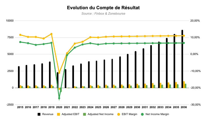 Lors de sa dernière phase de croissance avant 2019, le titre se traitait souvent à des multiples supérieurs à 20x pour une croissance de 6 à 8 % par an.